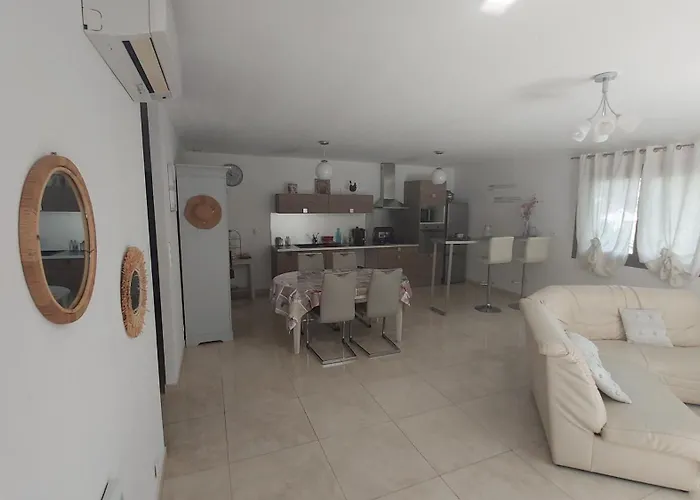 Das am Strand Apartment verfügt über einen Wohnbereich, einen Patio und einen Balkon und Annehmlichkeiten wie eine Klimaanlage. In der Ferienwohnung " Les Chenes " steht den Gästen ein Badezimmer mit einem Haartrockner und Handtüchern zur Verfügung. Außerdem findet man hier eine begehbare Dusche und eine getrennte Toilette.
